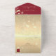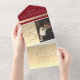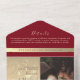 This modern all-in-one wedding invitation features a striking red and gold gradient design with space for a custom photo, RSVP section, and wedding details—no inserts required. Elegant script overlays botanical gold accents for a romantic yet contemporary touch. A stylish and eco-friendly choice for couples looking for a compact, all-inclusive format. Please note: This all-in-one invitation requires a separate envelope for mailing. We recommend pairing it with a standard A9 envelope (5.75" x 8.75") for best fit.