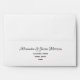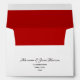 Simple, modern calligraphy red black and white wedding invitation 5x7 envelope with return address and monogram at the front.