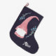 A cute Christmas stocking with the modern version of a red Swedish gnome and a couple of floral embellishments . Add a name using the template .