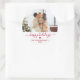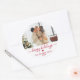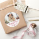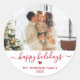 Modern Red Script Family Photo Happy Holidays Classic Round Sticker