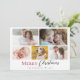Modern Red Script Photo Collage Merry Christmas Holiday Card
