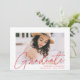 Invite guests to celebrate the graduation with our modern photo graduation party invites. The trendy graduation party invites feature the graduate's photo with "Graduate" in a red modern calligraphy script overlay. Personalize the front of the invites by adding the graduate's name, school name, and graduation year. The invite reverses to display your graduation party details and a trendy red and white dotted geometric pattern.