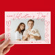 Send your love to friends and family with this modern Valentine's Day photo card! The card features "Happy Valentine's Day" in a trendy red script with red, hand-drawn hearts along the sides of the card on a blush background. Your horizontal photo is displayed near the middle of the design. Personalise the Valentine's Day photo card by adding your name and the year in red lettering. The card reverses to display a red and blush heart pattern.