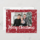 Modern Red Snowflake Photo Christmas Postcard