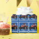 A farmer's favourite red tractor is over a blue background on this fun design.
