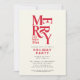 Modern red vintage merry and bright corporate Christmas party invitation. Modern typography design. Part of a bright fun collection.