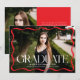Celebrate your high school or college graduate with this bold and stylish graduation announcement, featuring a full-bleed horizontal photo framed by a chic red wavy border. "Graduate" is displayed in bold white lettering adding a modern touch, while the graduate’s name, school, and class year provide a personalised feel. The back includes a vertical photo with space for your custom message, making it the perfect way to share this special achievement with family and friends.