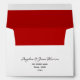Make a bold and stylish statement with this elegant white 5x7 wedding envelope featuring a vivid red liner and personalised return address in flowing script. The clean layout and eye-catching colour combo are perfect for winter weddings, romantic celebrations, or modern wedding themes. This envelope blends minimal elegance with a pop of personality, setting the tone for an unforgettable event.