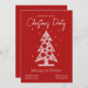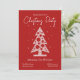 Invite your loved ones to celebrate the holiday season with this modern red Christmas party invitation featuring a minimalist white Christmas tree design with playful polka dot ornaments and falling snow. The stylish typography and clean layout make it a chic and festive choice for your winter gathering.