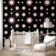 Modern Red White Circle Pattern Black Wallpaper has a beautiful modern geometric design that will add a sophisticated bold statement to any wall.