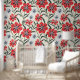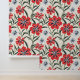 Modern Red White Floral Pattern Wallpaper features bright and bold red and white flowers with green leaves on a cream background. Perfect for bedrooms, home, office and party decor. Created by Evco Studio www.zazzle.com/store/evcostudio
