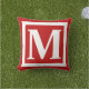 Set off your patio decor with this modern design bold monogrammed pillow. Customise to any colour. Both sides of pillow are red and front side has large white bold monogram initial framed with wide white border. Also makes a great gift idea for a new home.