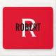 Modern design with red background, a modern white monogram with black name. Personalise with your name and initial.