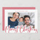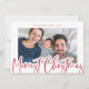 Modern Red & White Script Merriest Christmas Photo Holiday Card