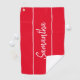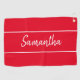 Modern Red White Script Monogram Womens Golf Towel