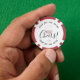 A fun and modern drinks voucher or token for your celebration, with your names and date on the reverse. A watercolor glass of red wine featured on the front of the poker chip.