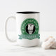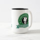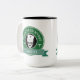 The green badge logo design adds more contrast to the two-toned colour accent coffee mug. These can be personalised with your name by editing the text and or the style of the font for your liking.