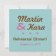 Our Modern Rehearsal Dinner Square Invitation in Blue can be easily customised by changing the names and date and adding Time and Date to the back (at no extra charge)! Design features simple modern design with text in chocolate brown and pink against a pale teal blue background. Contact us and we will customise the design for you! Envelopes provided. Volume discounts available.