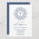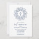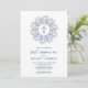 Elegant blue and white first communion invitations feature a cross surrounded by a wreath of leaves and your details in chic lettering. MATCHING items available in our collection.