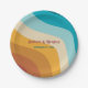 Modern Retro 70's Colourful Rainbow Waves Wedding Paper Plate