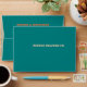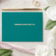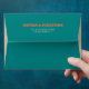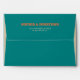 Retrun address personalized retro 70s bold typography font wedding teal, rusty orange, and beige envelopes with abstact shapes liner.