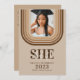 Introducing the perfect invitation for any graduation party! This modern retro brown graduation party invitation features a classic design and a neutral colour palette that is sure to match any and all graduation party themes. The design has two photo spaces, allowing you to add pictures of the graduate or any other photos that you want to share with your guests. This unique and stylish design is perfect for celebrating any special graduate, and it’s sure to make your graduation party a night to remember.