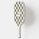 Introducing our modern retro tan beige chequered pattern monogram pickleball paddle – a perfect blend of style and performance for the discerning player. This paddle features a fun, nostalgic chequerboard design in olive green tones, giving it a timeless retro feel with a modern twist. What's more, you can make it uniquely yours with a personalised monogram placed inside one of the chequerboard squares. Whether you're hitting the court for a competitive match or a casual game, this paddle offers a combination of playful design and high-quality craftsmanship to elevate your pickleball experience. Stand out and make a statement with this chic, customised paddle! Design by ©Moodthology Papery