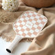 Introducing our modern retro tan beige chequered pattern monogram pickleball paddle – a perfect blend of style and performance for the discerning player. This paddle features a fun, nostalgic chequerboard design in blush pink tones, giving it a timeless retro feel with a modern twist. What's more, you can make it uniquely yours with a personalised monogram placed inside one of the chequerboard squares. Whether you're hitting the court for a competitive match or a casual game, this paddle offers a combination of playful design and high-quality craftsmanship to elevate your pickleball experience. Stand out and make a statement with this chic, customised paddle! Design by ©Moodthology Papery