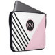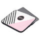 A contemporary pop art geometric pattern with a retro feel, this fashion forward laptop sleeve has angled black stripes and pink colour block with a prominent matching round frame surrounding your monogram. Personalise the text template with your monogram. Other matching office products and tech gear accessories are available in this stylish design.