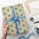 Modern Retro Green Christmas Trees Pattern Wrapping Paper