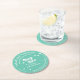 Modern Retro groovy green 70s wedding sve the data Round Paper Coaster
