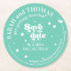 Announce your special day in style with our modern wedding save the date invitation! This unique design features retro calligraphy on a colorful and groovy abstract arches background. The vibrant green hues evoke the spirit of the 70s, making it perfect for couples who want to transport their guests back to the disco era. Whether you’re planning an intimate garden wedding or a lively dance party, this round paper coaster sets the tone for a nostalgic and fun-filled celebration. Customize it with your names, wedding date, and venue details. Get ready to groove down the aisle.