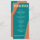 Abstract shapes retro vintage 70s style unique wedding menu card with bold typography in a vibrant trendy modern teal, beige tan and orange chic color palette. +++++++ Please note that all the colors are changeable. ++++++++++++ Suitable for informal casual stylish contemporary weddings.