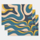 Modern Retro Liquid Swirl Abstract Pattern Blue Wrapping Paper Sheet