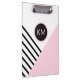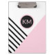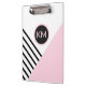 With its feminine style contemporary pop art geometric pattern and retro feel, this fashion forward clip board has angled black stripes and pink colour block with a prominent matching round frame surrounding your monogram. Personalise the text template with your monogram. Other matching office products are available in this stylish design. It makes a wonderful personalised choice for home, school or business.