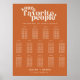 Modern Retro Orange Wedding 14 Table Seating Chart