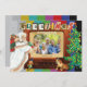 Capture the spirit of the holiday season with our Modern Retro Photo Family Holiday Greeting Card. This campy and fun card features retro artwork and showcases your family photo set inside a vintage television set. The collage includes iconic holiday elements such as Santa Claus ready to deliver Christmas cheer, a cheerful elf, an adorable puppy dog, and a beautifully decorated Christmas tree. Spread joy and nostalgia with this unique and personalised greeting card that will surely bring a smile to your loved ones' faces. Retro style cut out letter typography. Unique way to send a holiday greeting card.