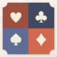 A stylish coaster featuring my original design of classic playing card suits in a warm retro colour-block layout. Clean, minimal, and timeless, these coasters add a subtle game-inspired touch to any table setting. Perfect for game nights, events, and as small favours.