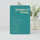 Modern Retro Teal Schedule of Events Rounded Edges Enclosure Card
