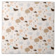 A modern look inspired by vintage retro Terrazzo stone patterns, featuring abstract shapes in multi tones including turquoise blue, grey, peachy pink, beige and browns.