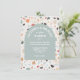 Terrazzo pattern wedding invitation with arch. Features large terrazzo in colours of terracotta, pinks, orange, blues, tans and cream. Great for a modern retro casual wedding. All wording can be changed to a rehearsal dinner, bridal shower, engagement party, etc. To make more changes go to Personalise this template. On the bottom you’ll see “Want to customise this design even further? Click on the EDIT using Design tool. From there you can change some of the fonts & some colours, move things around or delete what you need.