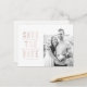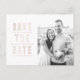 A simple and modern save the date postcard with classic black, white and faux rose gold accents makes your engagement photo stand out and sends your wedding guest the info they need to plan ahead for your wedding celebration with a chic couple's monogram within intertwined wedding rings. Easy to customise text makes this postcard a smart choice!