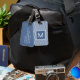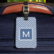 A modern riverside blue and white chevron pattern luggage tag. Make it personal by adding your initial to the monogrammed square.