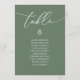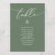 Wedding Dinner Guest Seating Table Chart Card, Modern Elegant Script. Customise the text and / or remove and fill in with your wedding party themed (sage green).