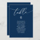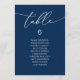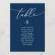 Wedding Dinner Guest Seating Table Chart Card, Modern Elegant Script. Customise the text and / or remove and fill in with your wedding party themed (Navy blue).