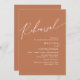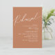 Planning a wedding Rehearsal Dinner celebration with the to-be Bride and to-be Groom, terracotta copper brown theme, before their BIG day? Invite the guests with this "Rehearsal" Perfect modern timeless minimalist Wedding Rehearsal Dinner Invitation Card. Add your rehearsal dinner celebration details.