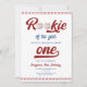 Our Little Slugger is turning one! This fun modern boy birthday invitation features a baseball theme. It has a colour scheme of red, white and blue to show America's favourite pastime.