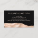 Chic and modern professional business card that features shimmery rose gold strokes edged in rose gold faux glitter against a black background. Your name and details are in simple and elegant light rose gold typography.