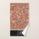 Modern Rose Gold Black Glitter Monogram Initial Bath Towel Set
