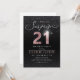 Modern Shhh, it's a surprise 21st birthday party invitation features stylish script and faux rose gold glitter number 21 and your party details on black glitter background colour, simple and elegant, great surprise adult milestone birthday invitation for men and women.
